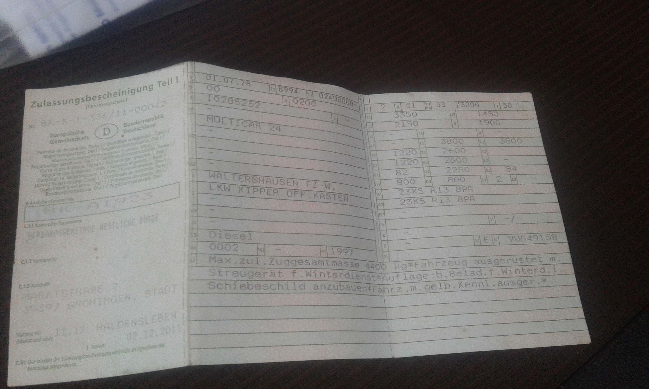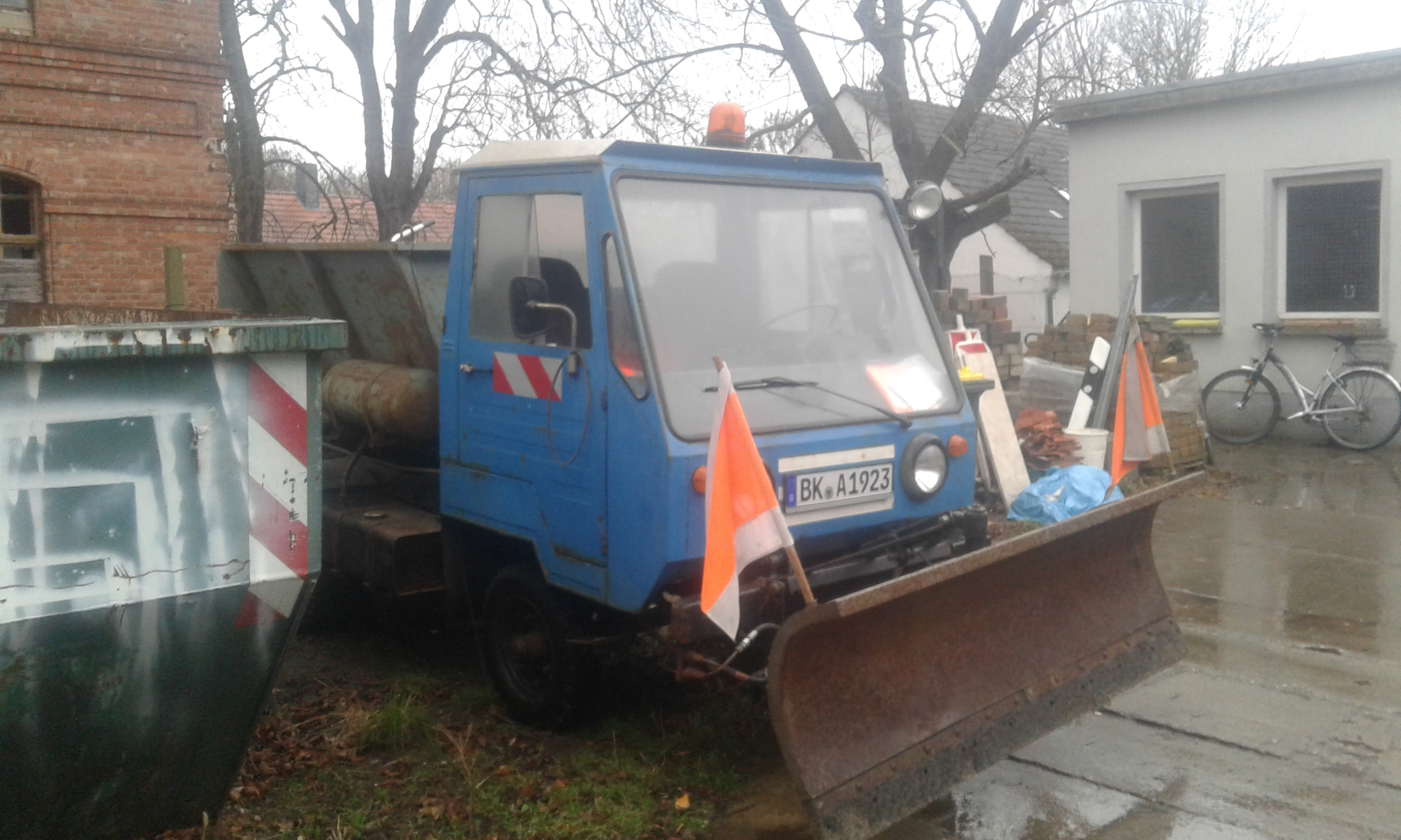Das Fahrzeug ist fahrbereit und hatte TÜV bis einschl. Oktober 2018. Derzeit befindet sich das Multicar in einem normal gebrauchten Nutzfahrzeuge – Zustand. Es ist mit einem Schiebeschild, einer Streuvorrichtung für die Verrichtung des Winterdienstes und einer Rundumleuchte ausgestattet. Diese Anbauteile können problemlos demontiert und gegen andere Anbaugeräte getauscht werden. Das Fahrzeug wurde am 01.07.1978 das erste Mal zugelassen und befindet sich seit Dezember 2011 in unserem Besitz. Angaben zur Laufleistung, Motorisierung und einen ersten Überblick über den Gesamtzustand entnehmen Sie bitte den Bildern, die als Anlage beigefügt sind.