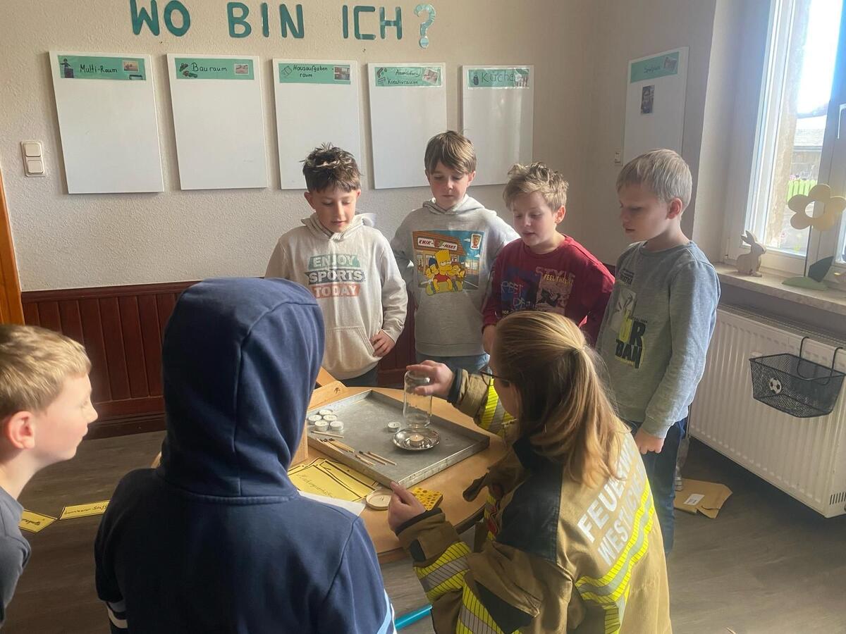 Am 17.03.2025 war die „Feuerwehr“ auf dem Gelände des Hortes „Villa Einstein“ zu sehen. Nein, es war kein Notfall – die Feuerwehr kam mit ganz vielen Informationen und Dingen im Gepäck, auch das Feuerwehrauto war präsent. In vier verschiedenen Stationen konnten die Mädchen und Jungen im Grundschulalter ihr Wissen unter Beweis stellen und/oder viel Neues lernen.