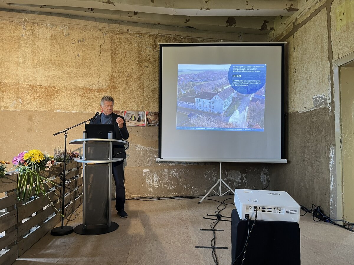 Im Mittelpunkt der Veranstaltung stand die fachliche Umsetzung des Projekts ISTEM. ISTEM steht für „Inspiring / Transferable / Sustainable Energy / Supply Concept for Architectural Monuments in Use“ – auf Deutsch: „Entwicklung eines inspirierenden Energieversorgungskonzepts für nachhaltige Kleinstadtquartiere zur Weiternutzung bzw. Neunutzung denkmalgeschützter Wohn- und Kulturbauten unter dem Aspekt von nachhaltigem, ressourceneffizientem und klimaneutralem Bauen“.