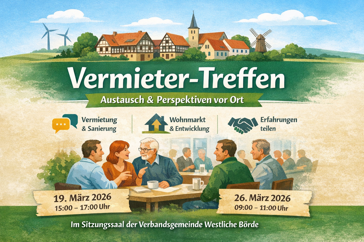 Um diesen Erfahrungsschatz zusammenzubringen, lädt die Verbandsgemeinde Westliche Börde zu einem offenen Vermieter-Treffen ein. Ziel ist der persönliche Austausch untereinander – unkompliziert, ohne feste Tagesordnung und auf Augenhöhe.